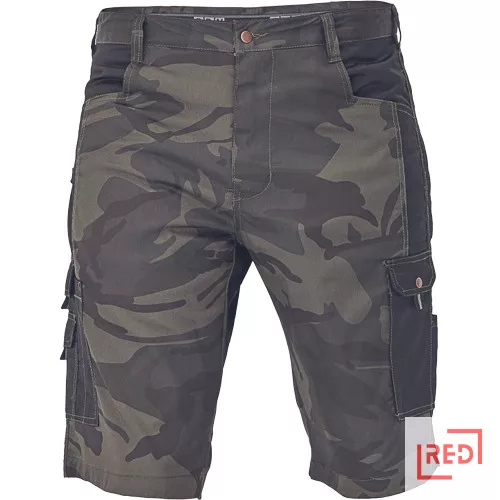 • könnyű, terepszínű férfi rövidnadrág, kevertszálas sávoly szövetből • funkcionális zsebekkel: 2 első, 2 cargo és 2 farzseb