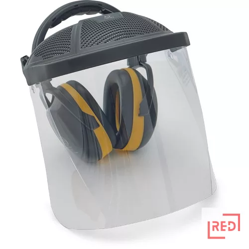 »Maximális komfort, minimális tömeg, ha nincs szükség a fejvédő viselésére. ED 2H fültok és víztiszta polikarbonát arcvédő kombinációja. A hallásvédő fültok tartós, könnyen állítható, szélesen párnázott és kényelmes műanyag fejpánttal, puha fülpárnákkal készül. Kompakt formájának köszönhetően az elakadás veszélyének csökken, például szűk helyeken. SNR 32 dB, 248g, EN 352-1:2002. Az arcvédő mechanikai védelmet biztosít közepes energiájú részecskék, és olvadt fémcseppek ellen. Hossza 200 mm. Súly: 74 gramm, EN 166 1B 3 9 (arcvédő). A készlet súlya 420 g. Pótalkatrészek rendelhetőek.