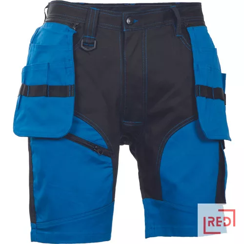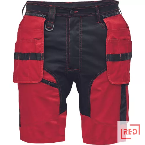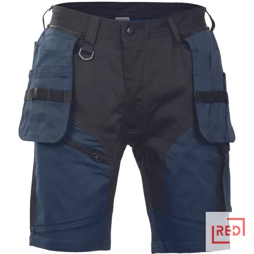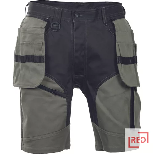 • férfi munkanadrág rugalmas derékkal • elöl 2 szerszámzsebbel, 1 cipzáras oldalzsebbel, 1 zsebfedős oldalzsebbel a szárakon, 2 zsebfedős hátsó zsebbel, D-gyűrűvel • dekoratív varratok