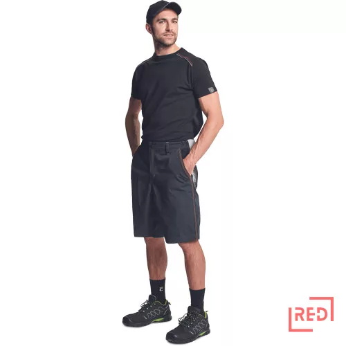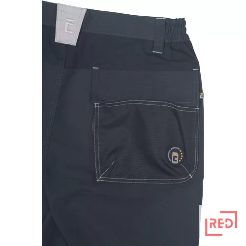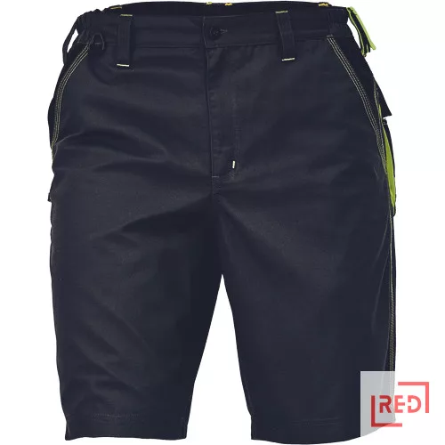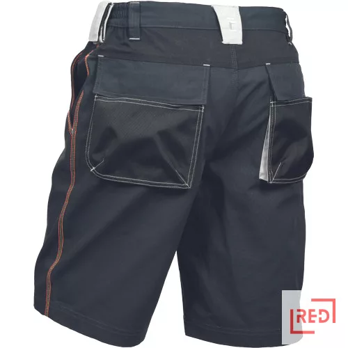 • férfi rövidnadrág rugalmas derékkal • 2 oldalzseb és 2 hátsózseb • kontrasztos színű kalapácstartó • D- gyűrű • dekoratív és kontrasztos, jól látható varratok