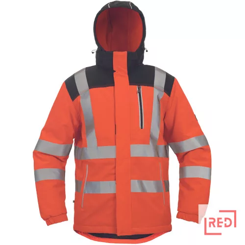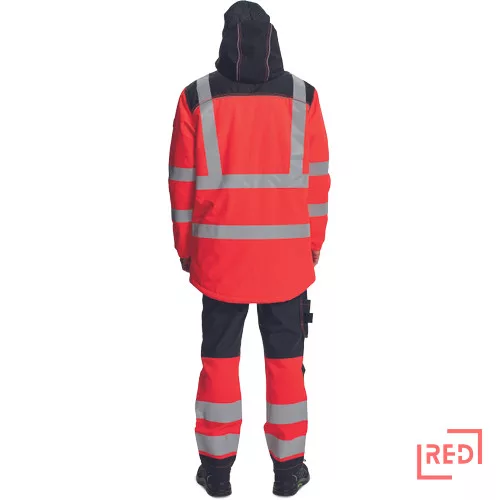 • bélelt jólláthatósági télikabát levehető kapucnival, TPU membránnal és hosszított hátrésszel • a vállrészen Oxford 600D anyagból készült megerősítő rátétekkel van ellátva • 1 kontrasztos színű cipzáras zsebbel, 2 oldalzsebbel, 2 zárható belső zsebbel rendelkezik • az alsó szegély zsinórral állítható • a derékrészen, az ujjakon és a vállakon 5 cm-es nyomtatott fényvisszavető csíkok kerültek