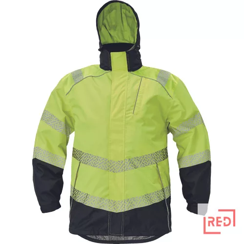 • férfi szél- és vízálló hi-vis kabát levehető kapucnival • a cipzárat tépőzáras hajtóka takarja • a kabát alja zsinórral szűkíthető • tépőzárral állítható mandzsetta • 2 cipzáras oldalzseb • 1 cipzáras mellzseb • 1 cipzáras belső zseb • hőszigetelő bélés • fényvisszavető szegély és szegmentált fényvisszavető csíkok