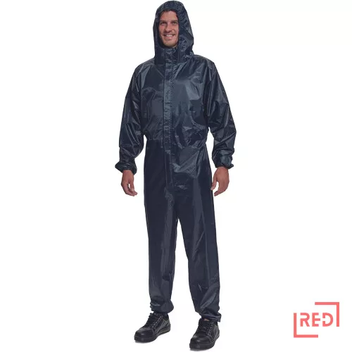• vízálló overall kapucnival • tépőzáras hajtókával fedett cipzár • belül hegesztett varrtatok • gumírozott derékrész • gumírozott mandzsetták • bevarrt gumiszalag a szárakon bokánál és a kapucni peremén