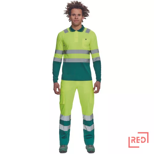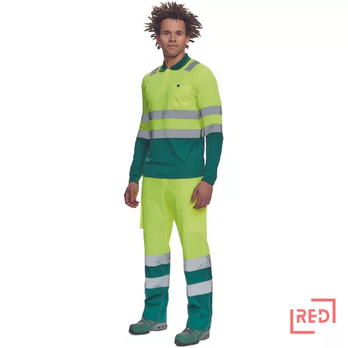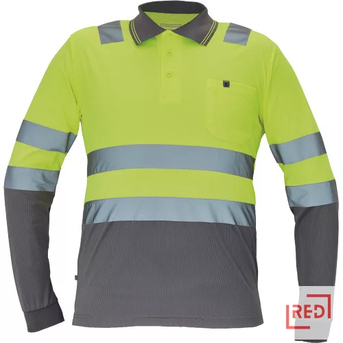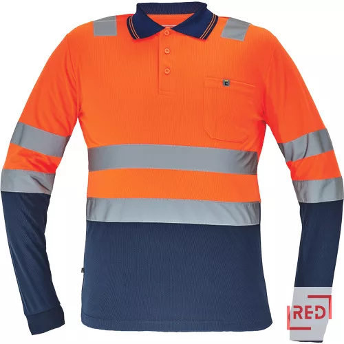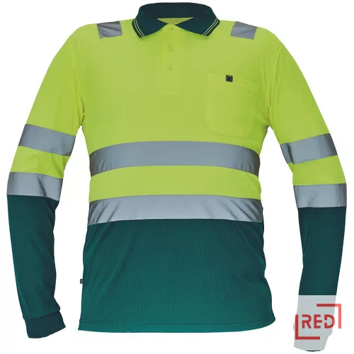 • Hi-Vis hosszú ujjú póló 5 cm széles fényvisszavető csíkokkal • 3 gombbal záródó nyakkivágás • rugalmas mandzsetta • kontrasztos színű gallér • 1 mellzseb