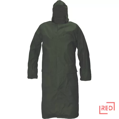 • hosszított, vízálló esőkabát kapucnival • lehegesztett varrattokkal • 2 mély zsebfedős oldalzseb • belső gumírozott mandzsetta • szellőzőbetétek a háton és a hónaljrészen • praktikus, tárolást könnyítő csomagolás