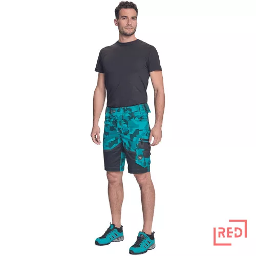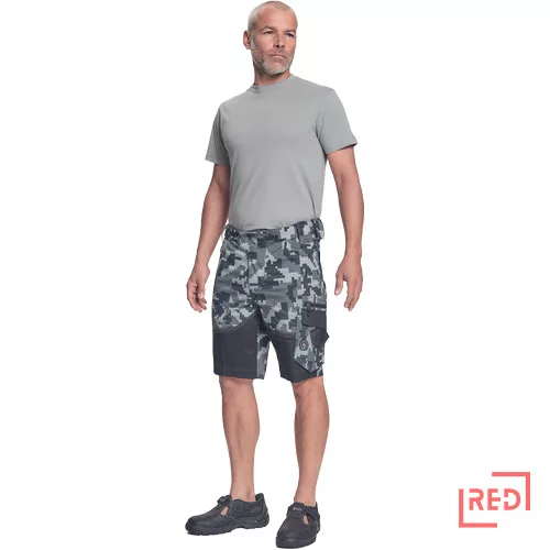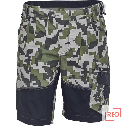 • férfi rövidnadrág innovatív • rugalmas Trifibetex® anyagból digitális terepmintával • 2 ékzseb • hátul 2 tépőzáras foltzseb • bal oldalon nagy multifunkciós zseb • jobb oldalon multifunkciós vonalzó • kés- és ceruzatartó • fém "D" gyűrű • rugalmas derék • fényvisszavető szegés • dekoratív tripla varrás kontrasztos színnel • kalapácstartó