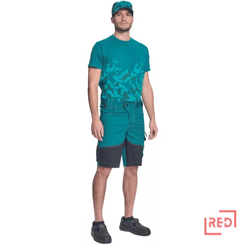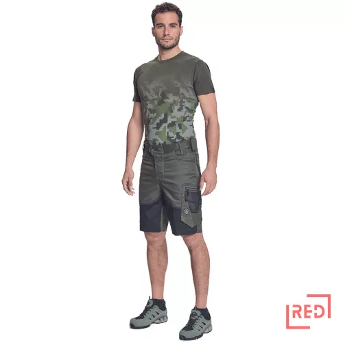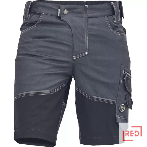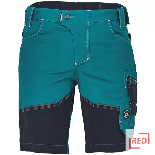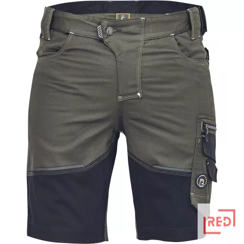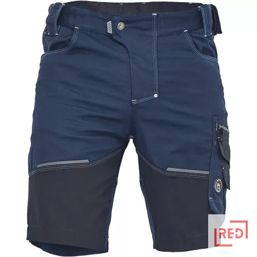 • férfi rövidnadrág innovatív, rugalmas Trifibetex® anyagból • 2 ékzseb • hátul 2 tépőzáras foltzseb • bal oldalon nagy multifunkciós zseb • jobb oldalon multifunkciós zseb vonalzónak • kés- és ceruzatartó • fém "D" gyűrű • rugalmas derék • fényvisszavető részletek • dekoratív tripla varrás kontrasztos színnel • kalapácstartó