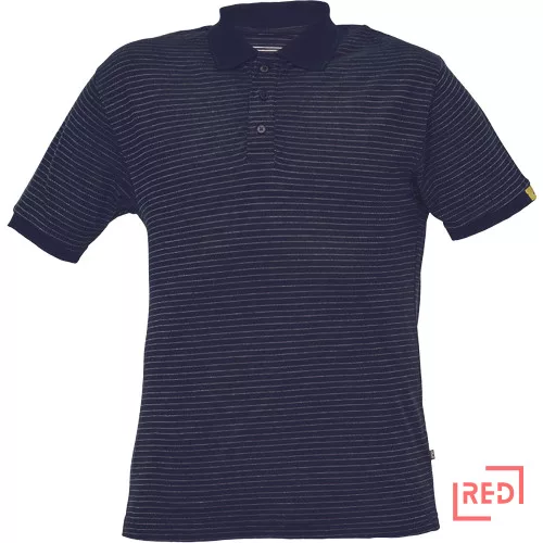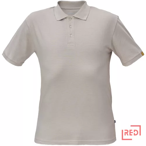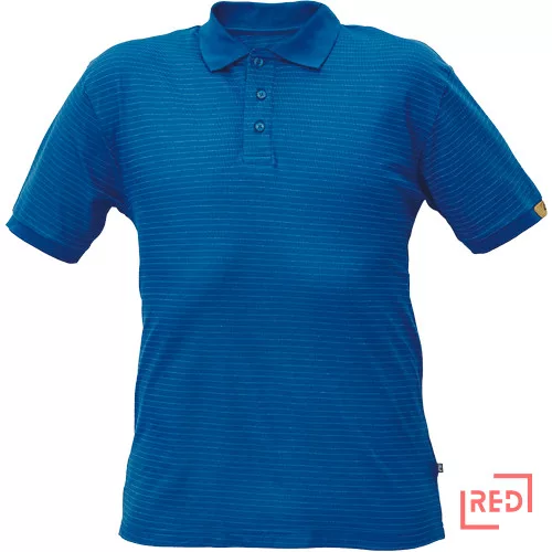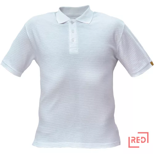 • rövid ujjú galléros pamut póló, antisztatikus szálakkal • univerzális minta • műanyag gombolású nyakkal